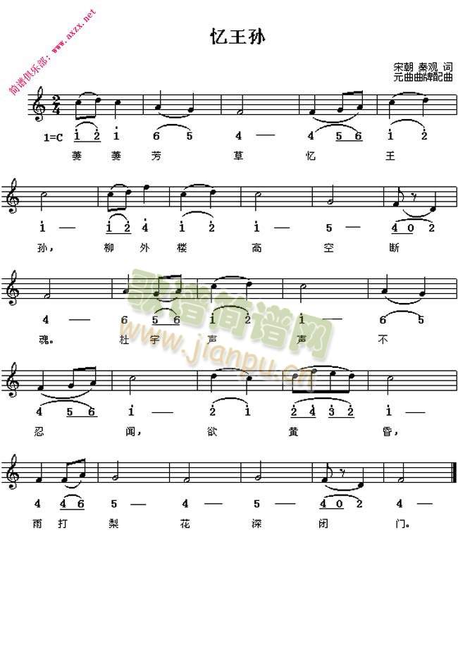[三字歌谱]忆王孙