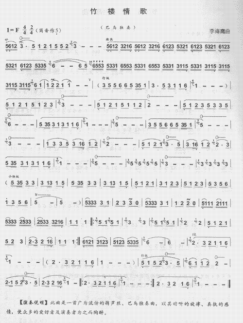 [葫芦丝谱]竹楼情歌(葫芦丝或巴乌谱)