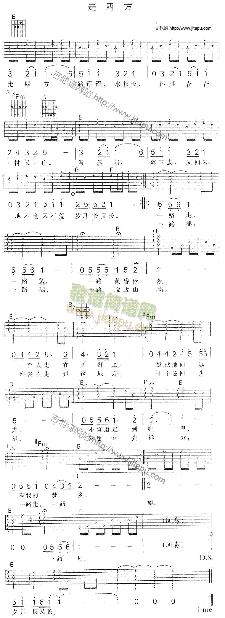 [吉他谱]走四方(《一路黄昏》主题歌) 未知