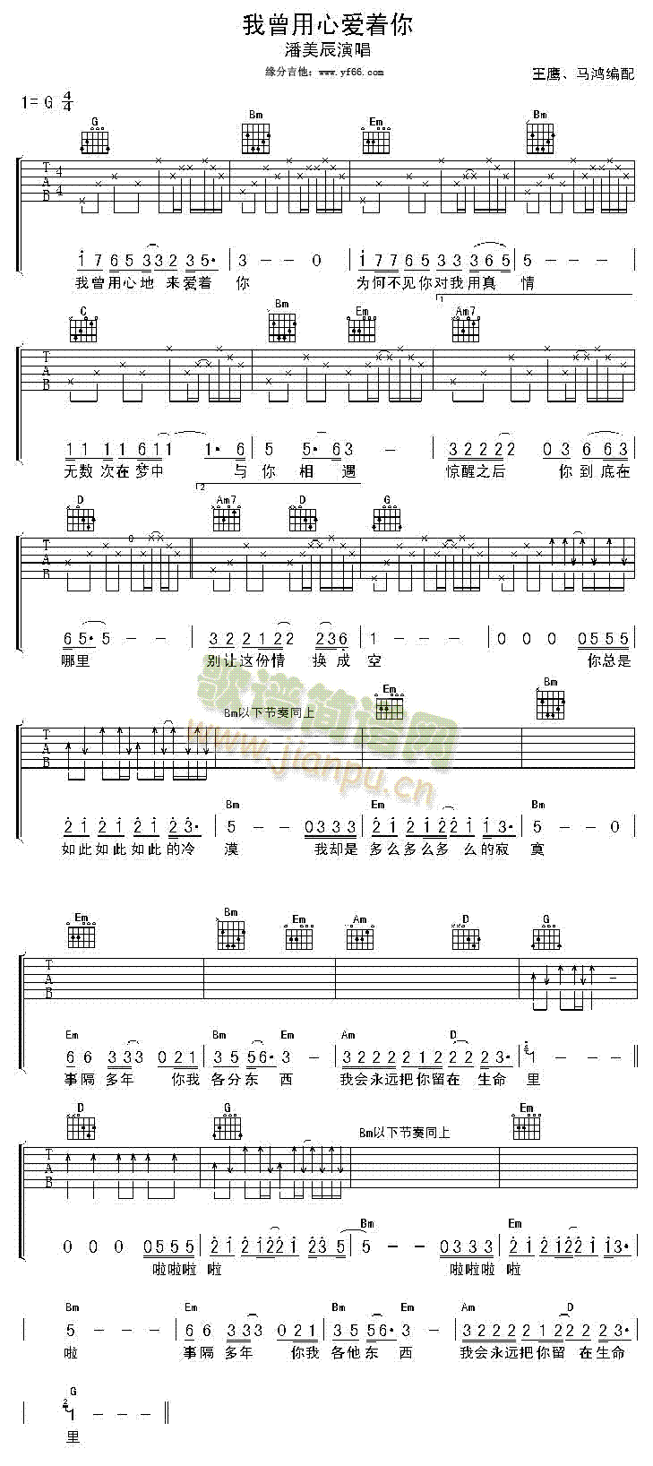 [吉他谱]我曾用心的来爱着你 潘美辰