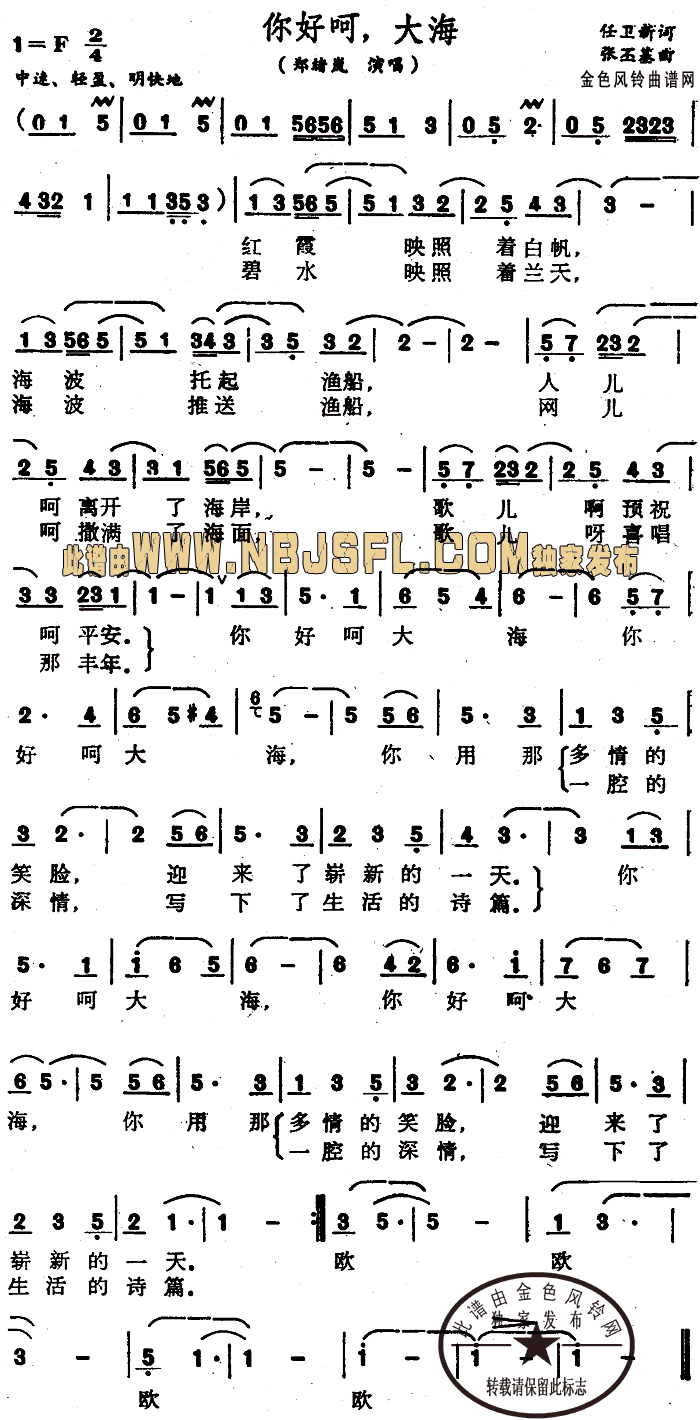 [五字歌谱]你好啊峡江(《三峡传说》插曲)