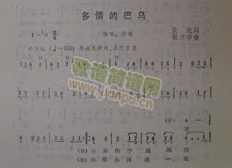 [五字歌谱]多情的巴乌(独唱,伴唱) 姚嘉