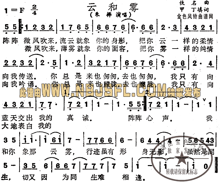 [九字歌谱]山野间飘着淡淡的雾 颂今音乐