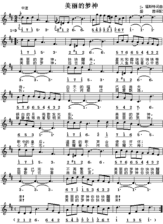 [五字歌谱]美丽的梦神[合唱曲谱] 未知