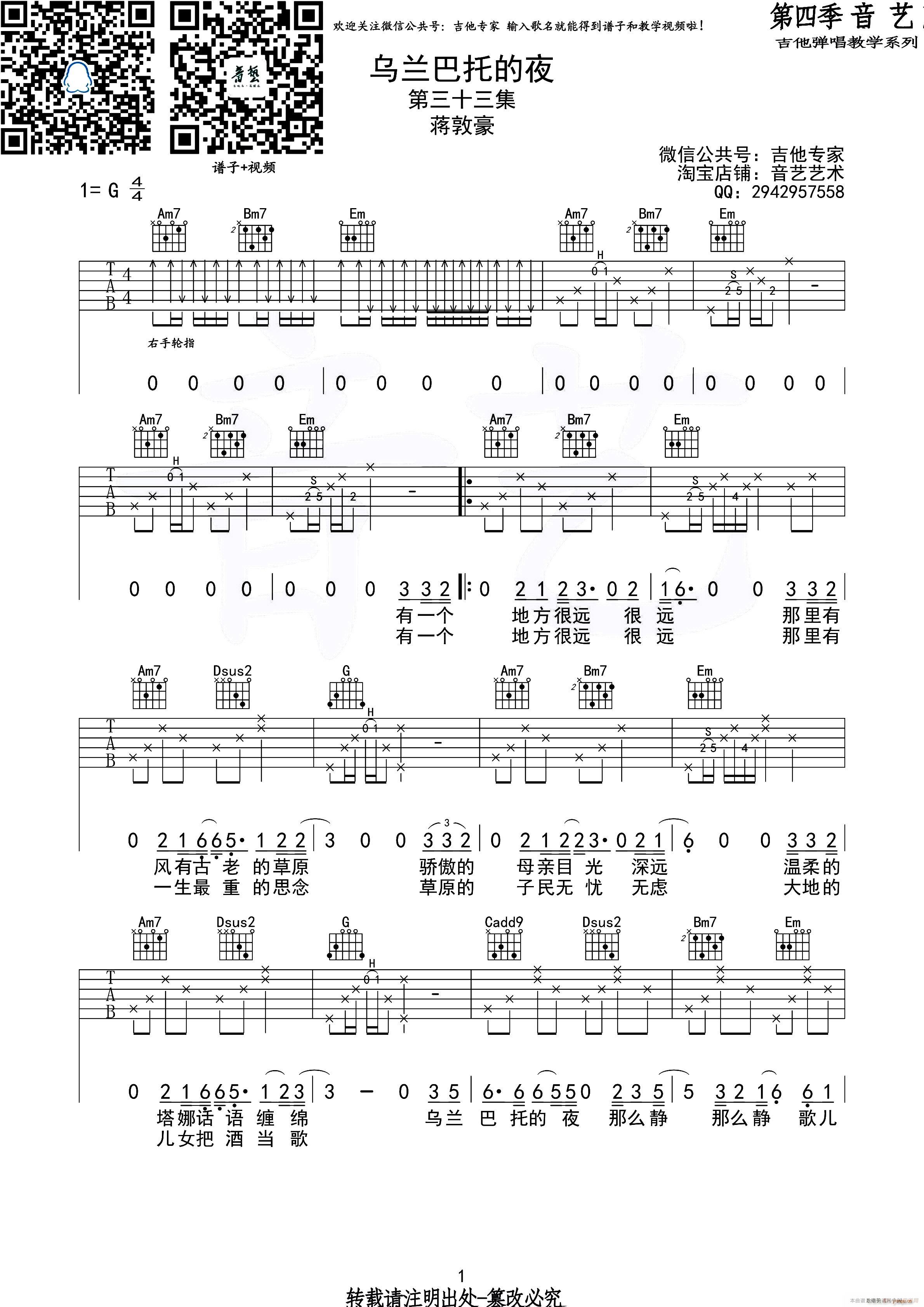 [吉他谱]乌兰巴托的夜(吉他 ) 蒋敦豪