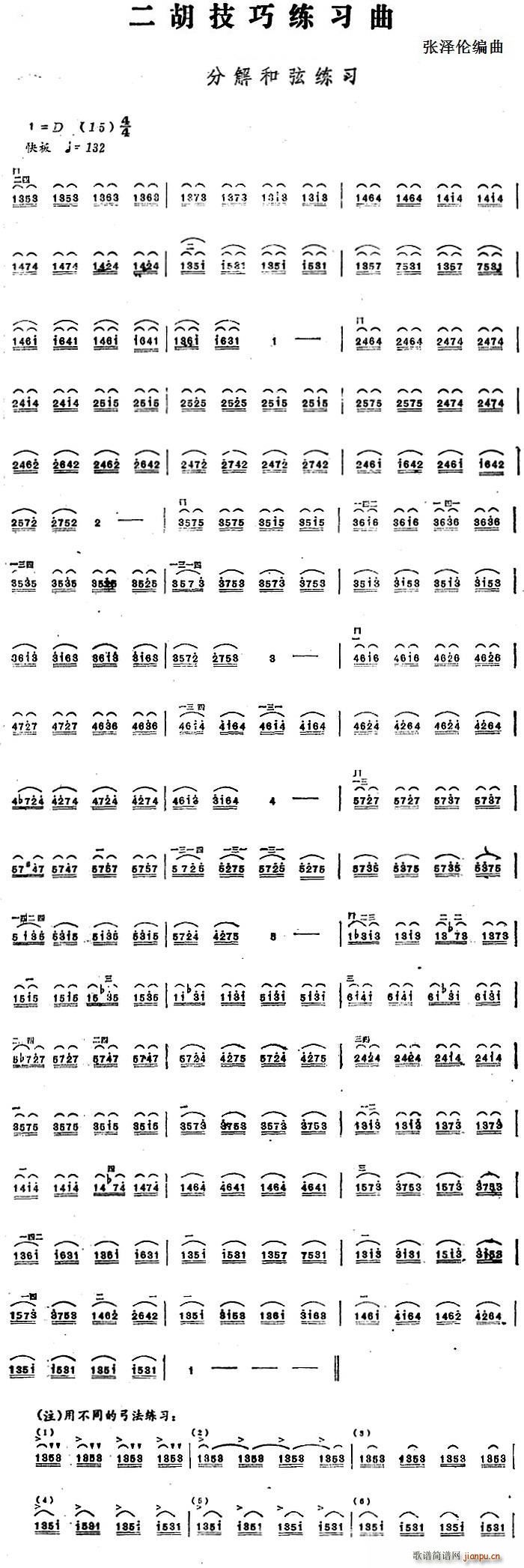 [二胡谱]二胡技巧练习曲 分解和弦练习