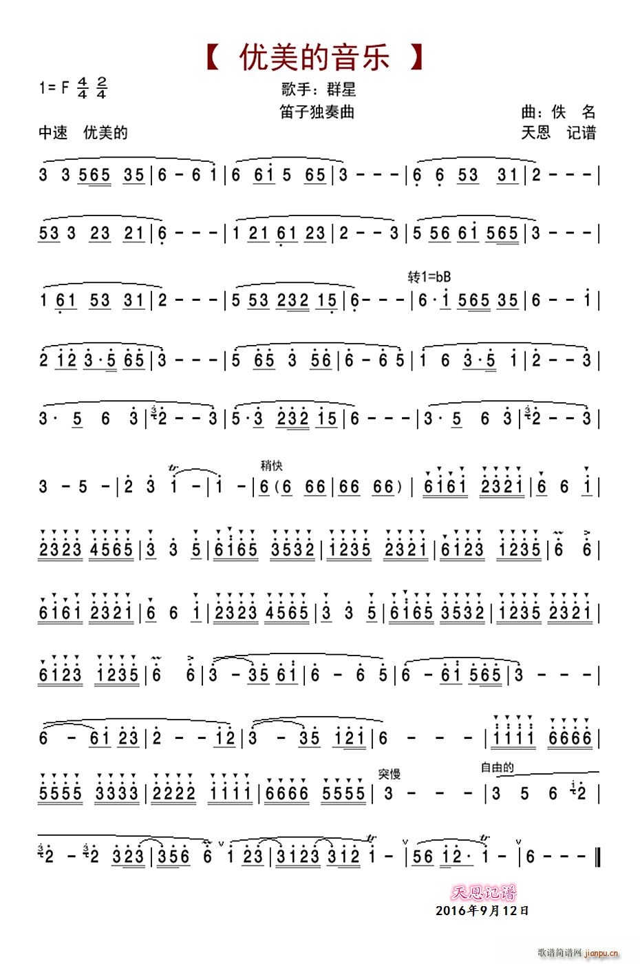 [笛箫谱]优美的音乐