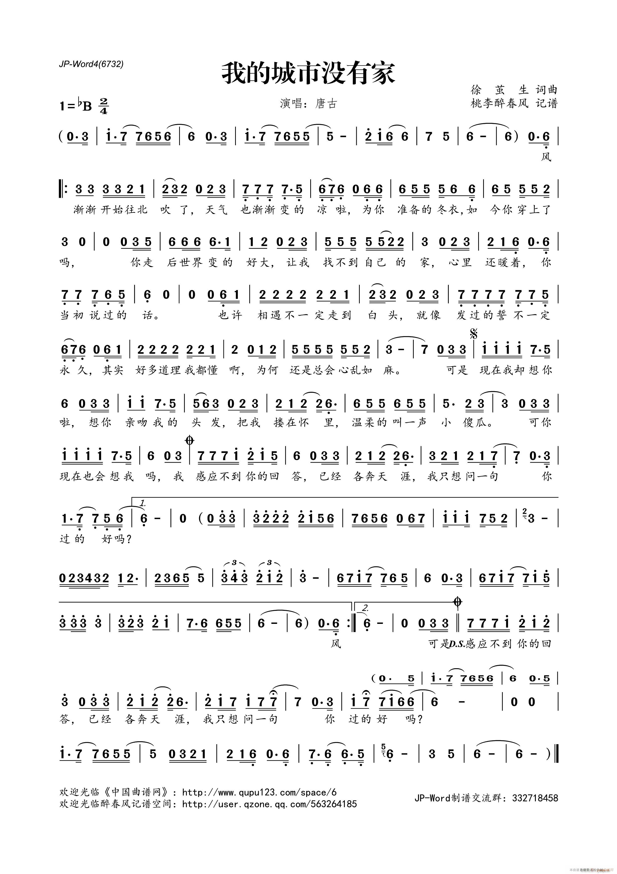 [七字歌谱]我的城市没有家 唐古
