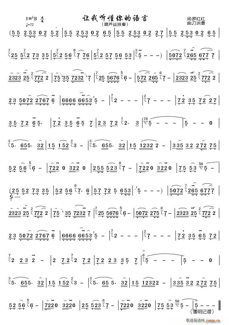 [葫芦丝谱]让我听懂你的语言(葫芦丝 )