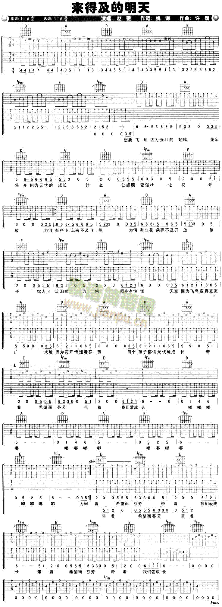[吉他谱]来得及的明天—赵薇 未知