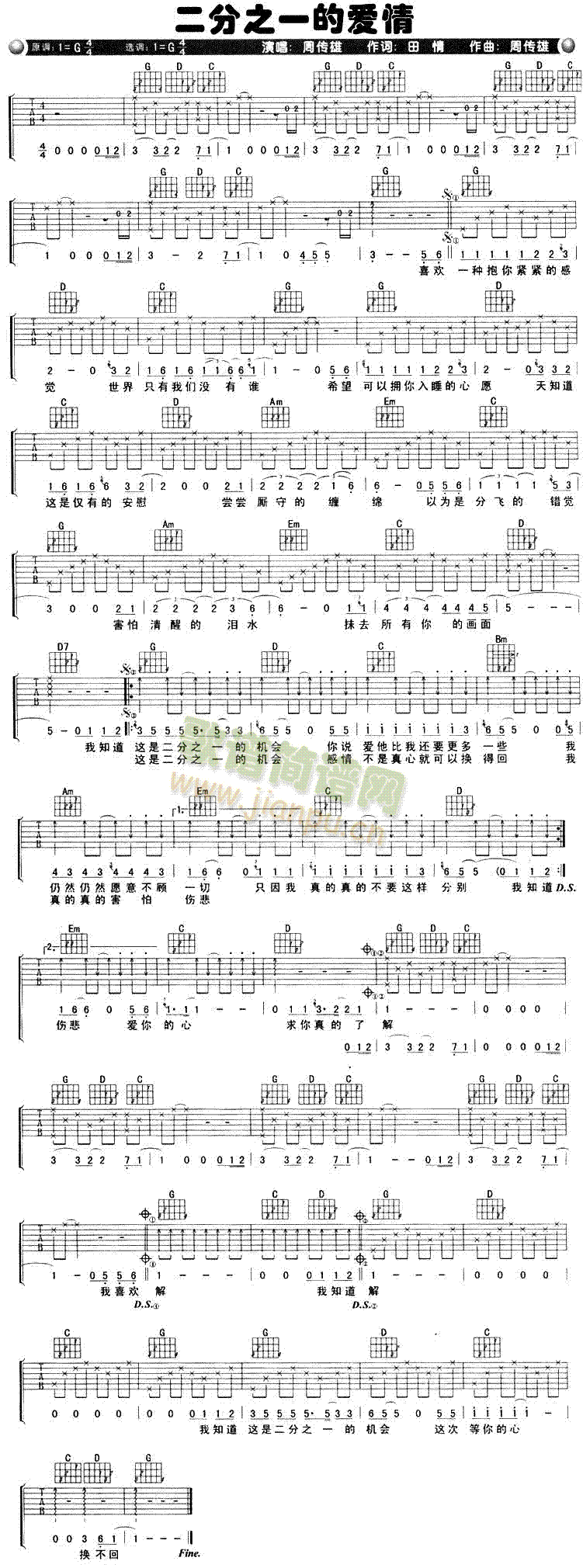 [吉他谱]二分之一的爱情 —周传雄 未知