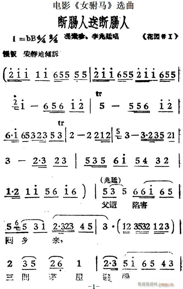 [七字歌谱]断肠人送断肠人《女驸马》 未知