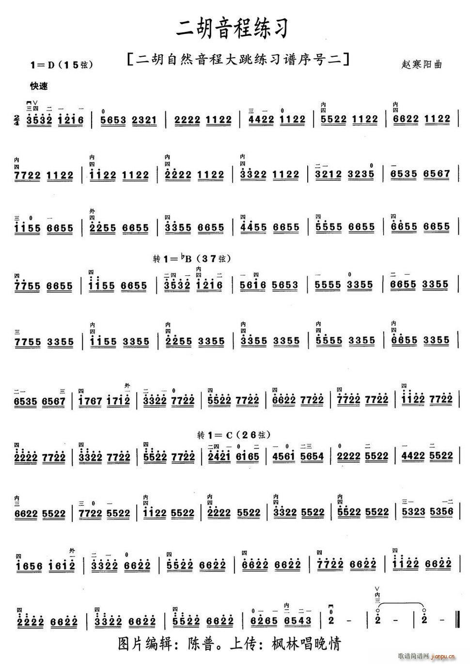 二胡音程练习(二胡自然音程大跳练习谱序号二)