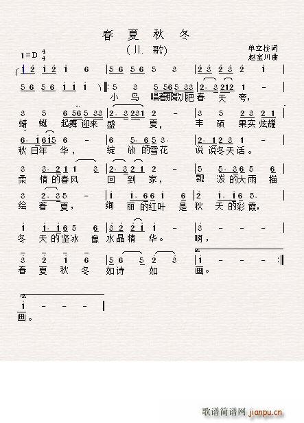 [四字歌谱]春夏秋冬(《四时别韵》序歌)