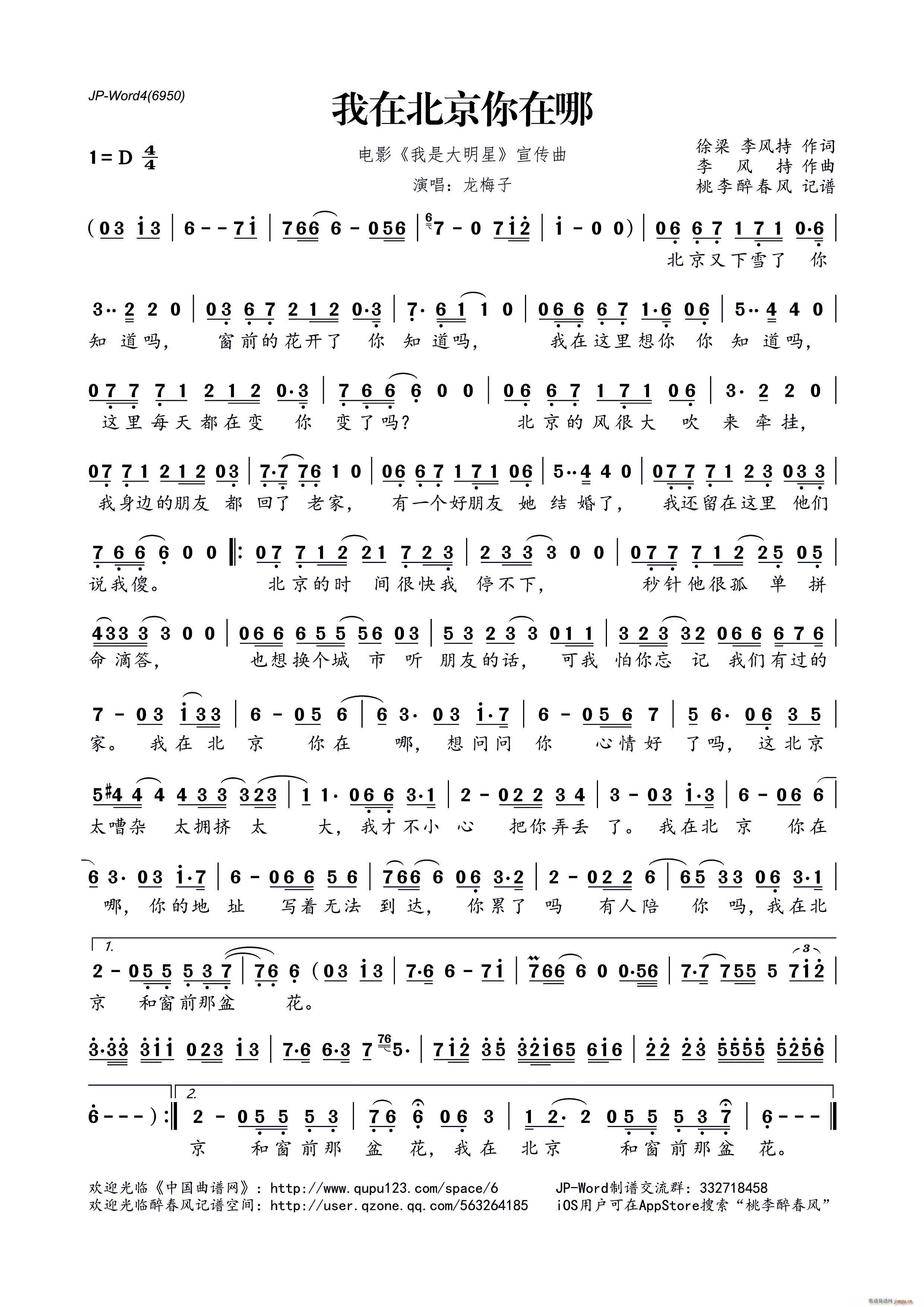 [十字及以上]我在北京你在哪(电影《我是大明星》宣传曲) ?龙梅子