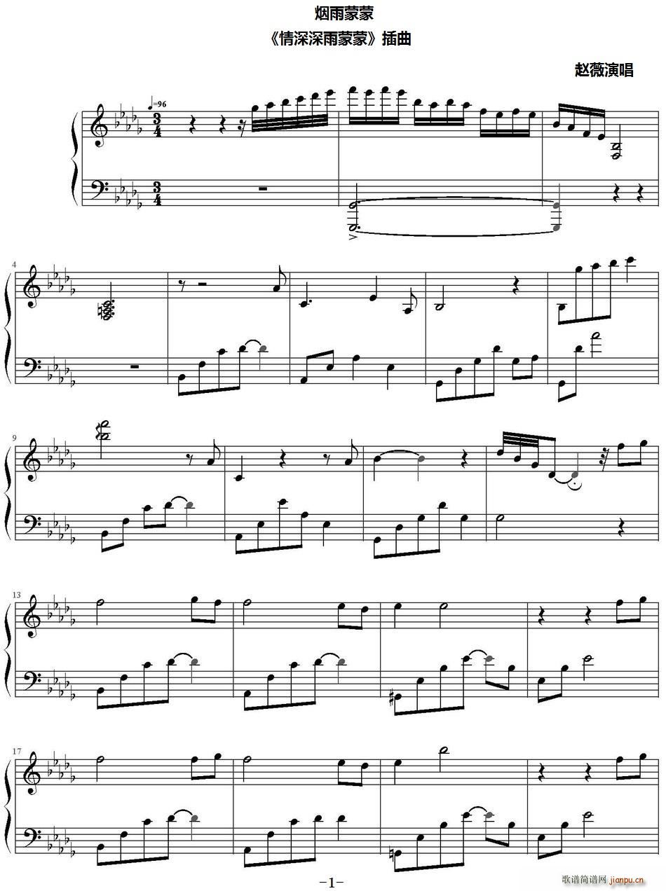 [六字歌谱]情深深雨蒙蒙 赵薇