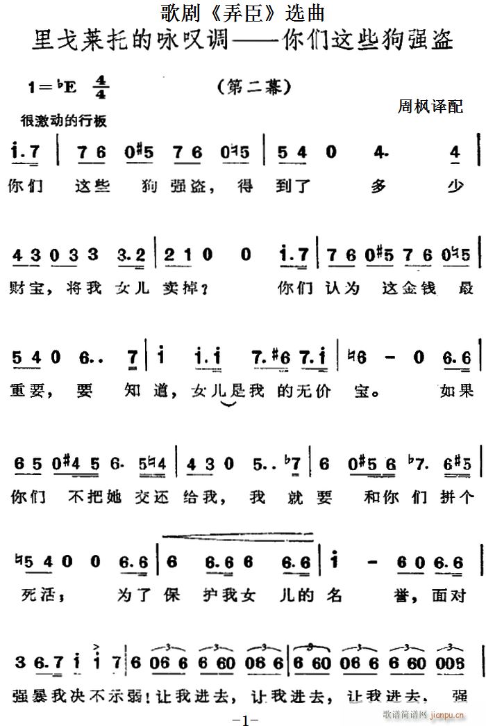 [十字及以上]歌剧《弄臣》选曲 里戈莱托的咏叹调——你们这些狗强盗(第二幕)