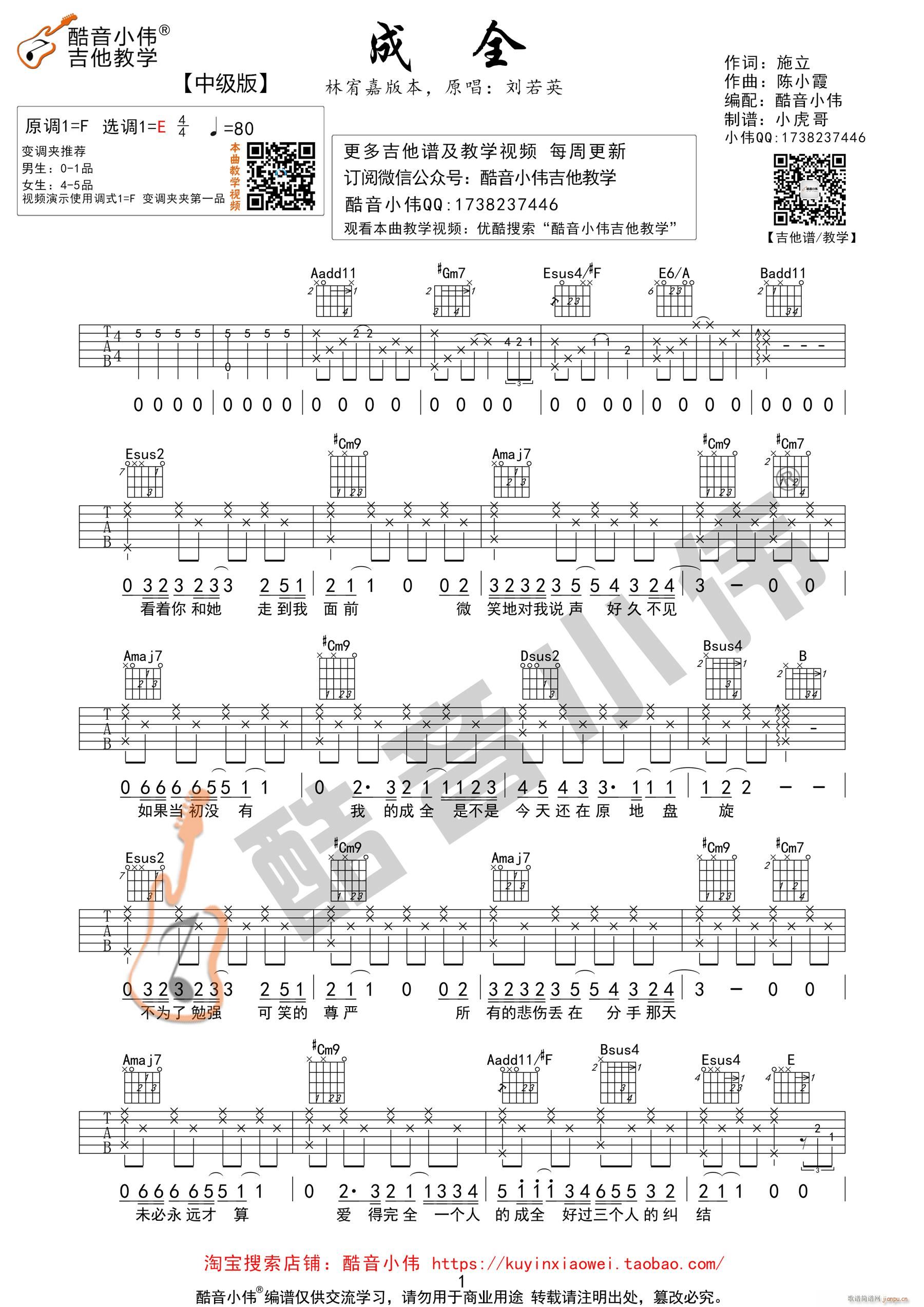 [吉他谱]《成全》 超原版 吉他教学 林宥嘉