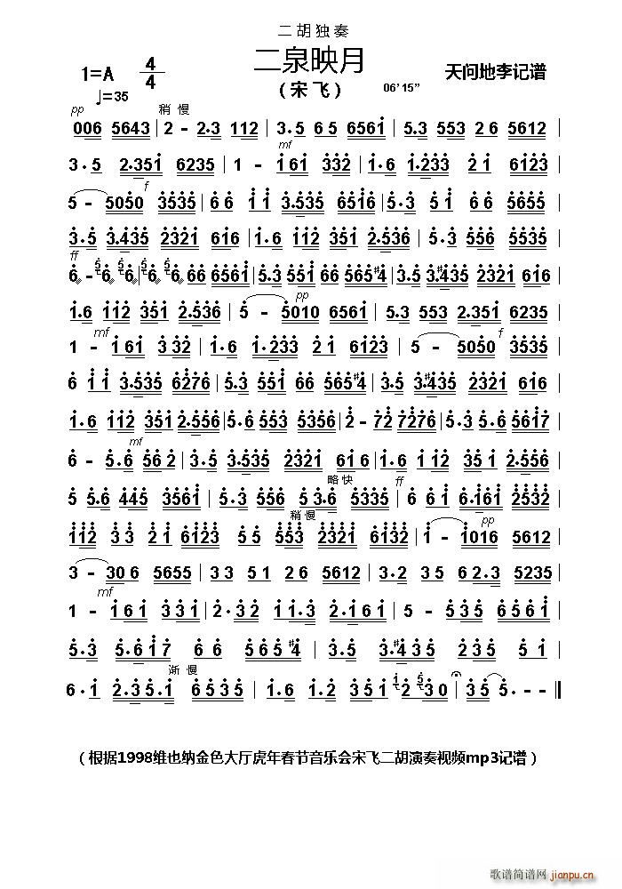 [二胡谱]二泉映月(二胡独奏 演奏版) 宋飞