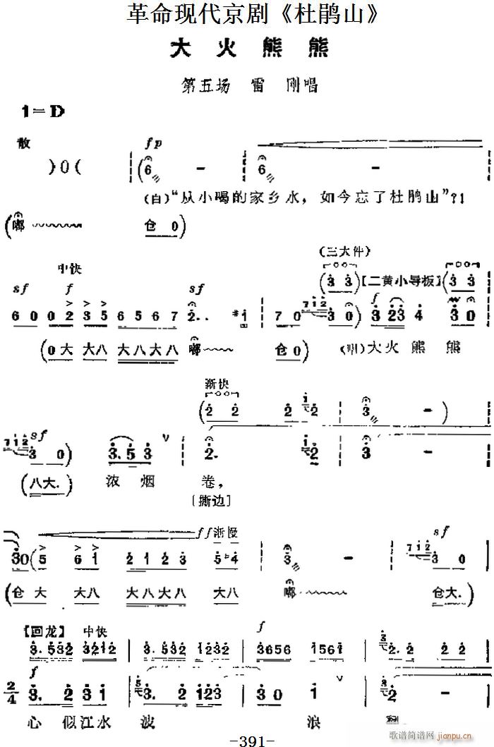[京剧曲谱]大火熊熊(《杜鹃山》 唱段) 京剧戏谱 雷刚