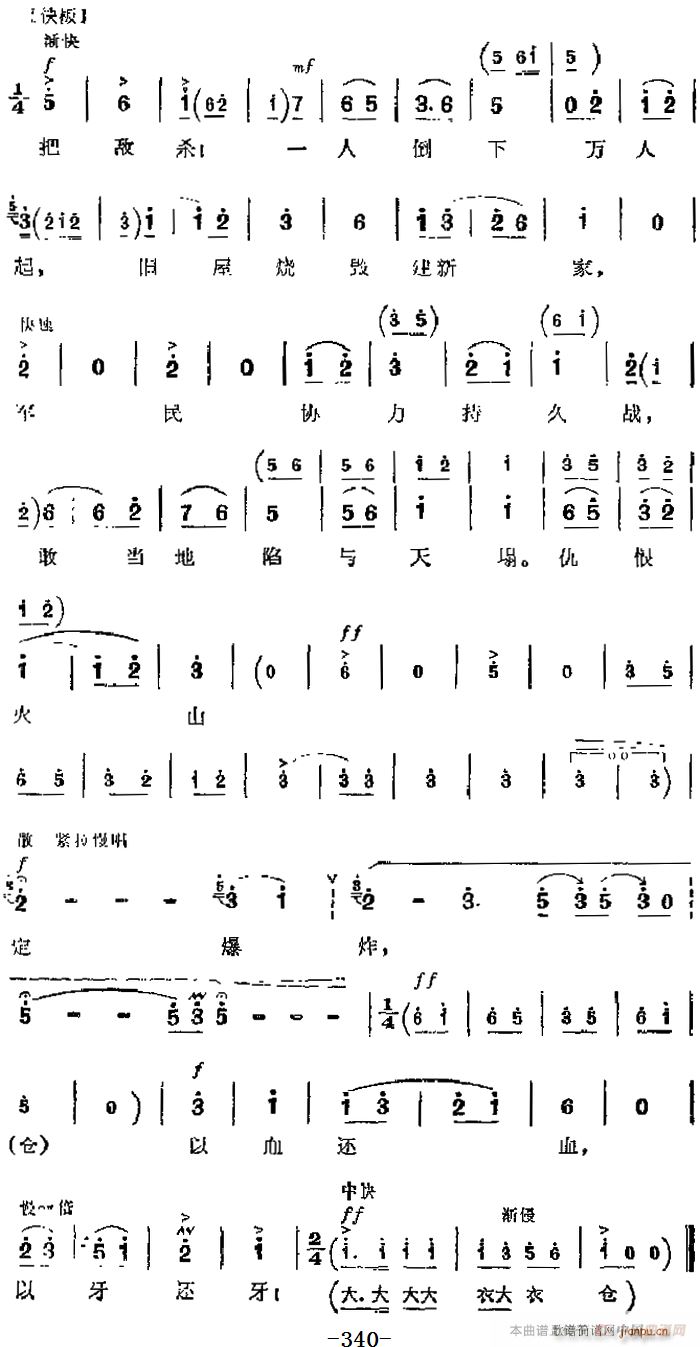 [京剧曲谱]革命现代京剧《平原作战》 唱段 以血还血 以牙还牙(第五场 赵勇刚唱段) 主要