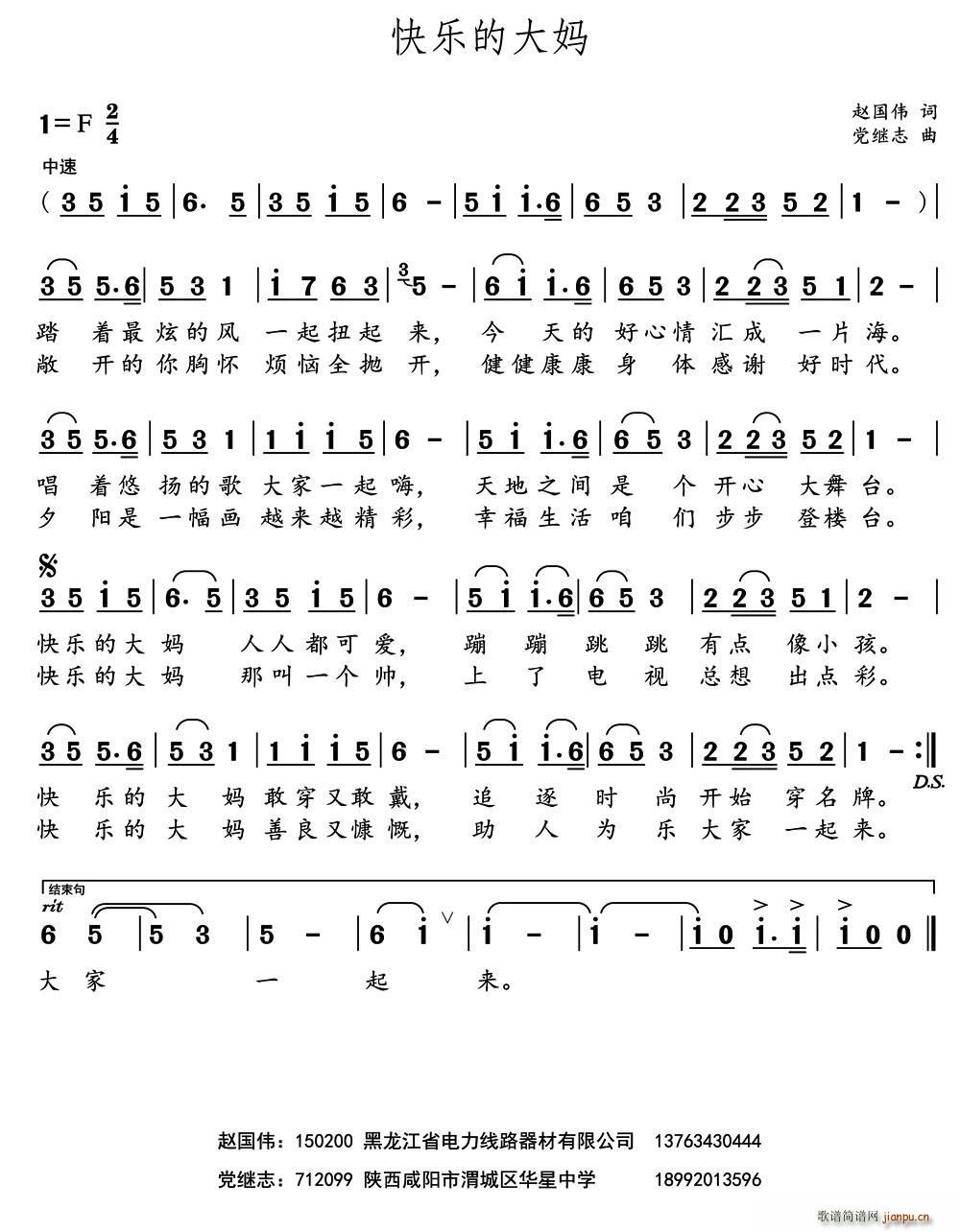 [八字歌谱]社区大妈(邓成彬词 王立曲)