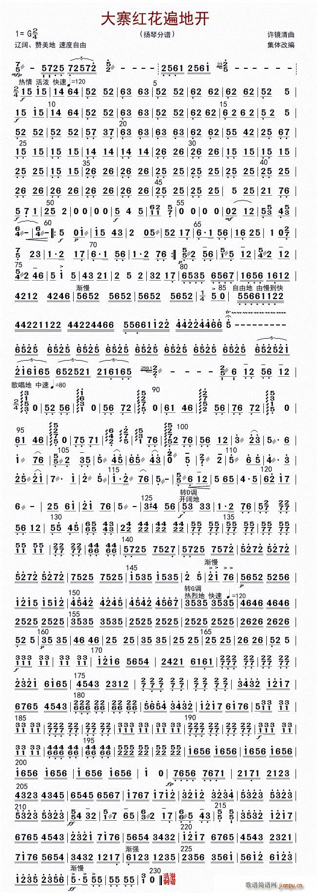 [古筝扬琴谱]大寨红花遍地开(扬琴分谱)