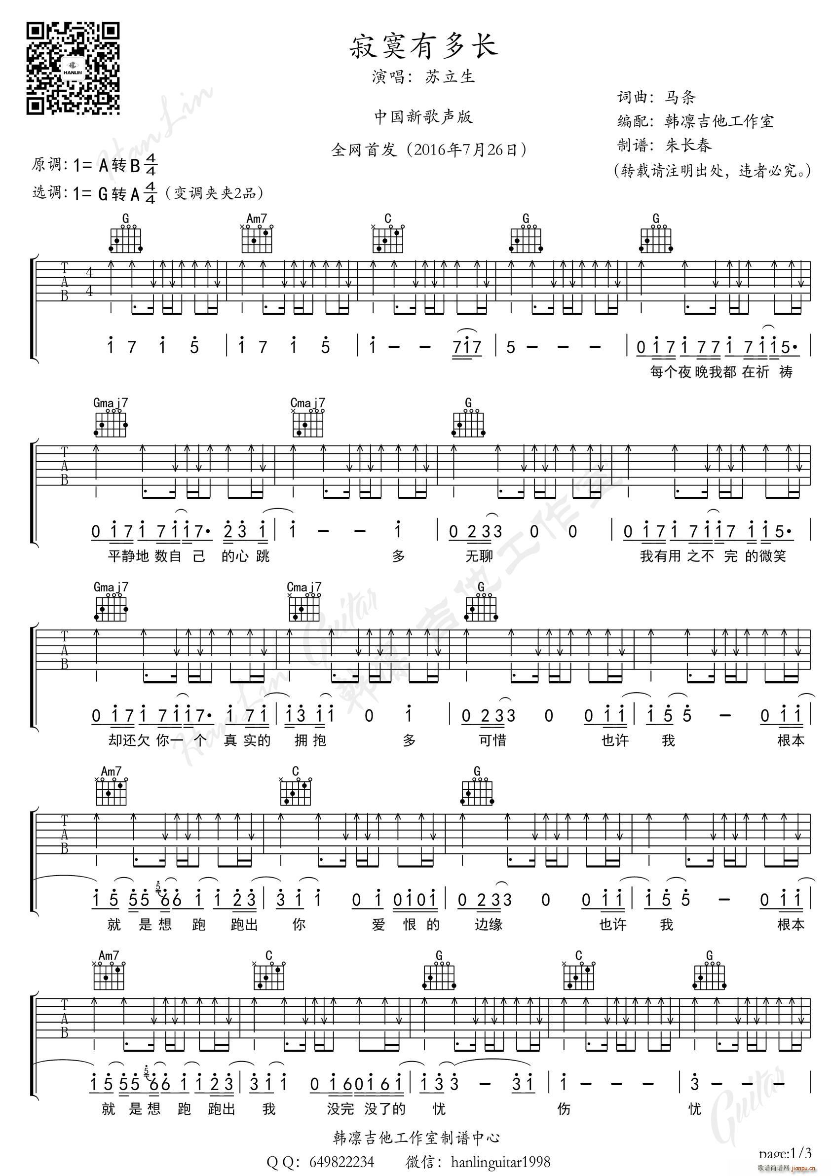 [十字及以上]寂寞有多长(韩凛原版编配) 苏立生