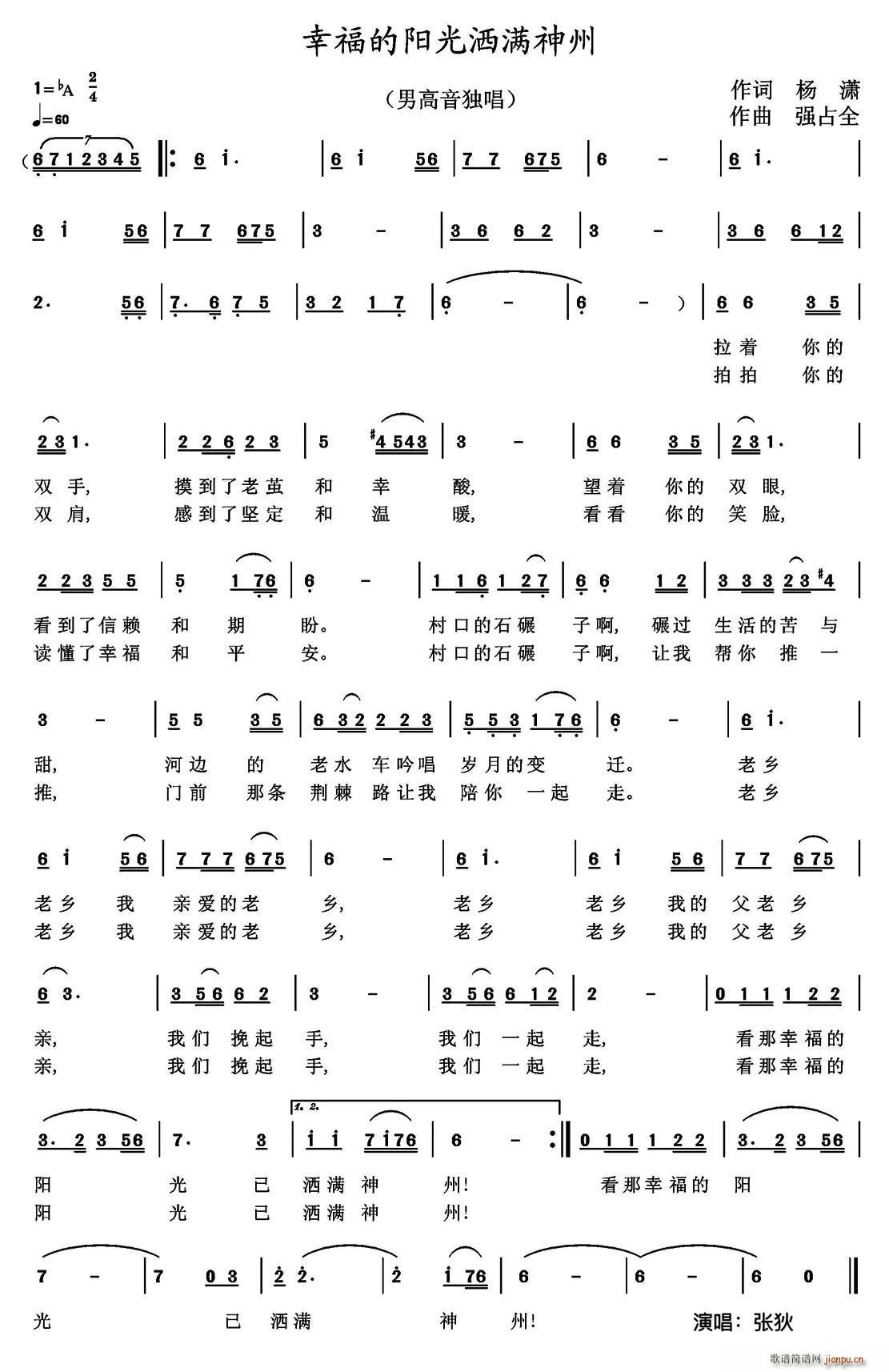 [九字歌谱]幸福的阳光洒满神州 张狄