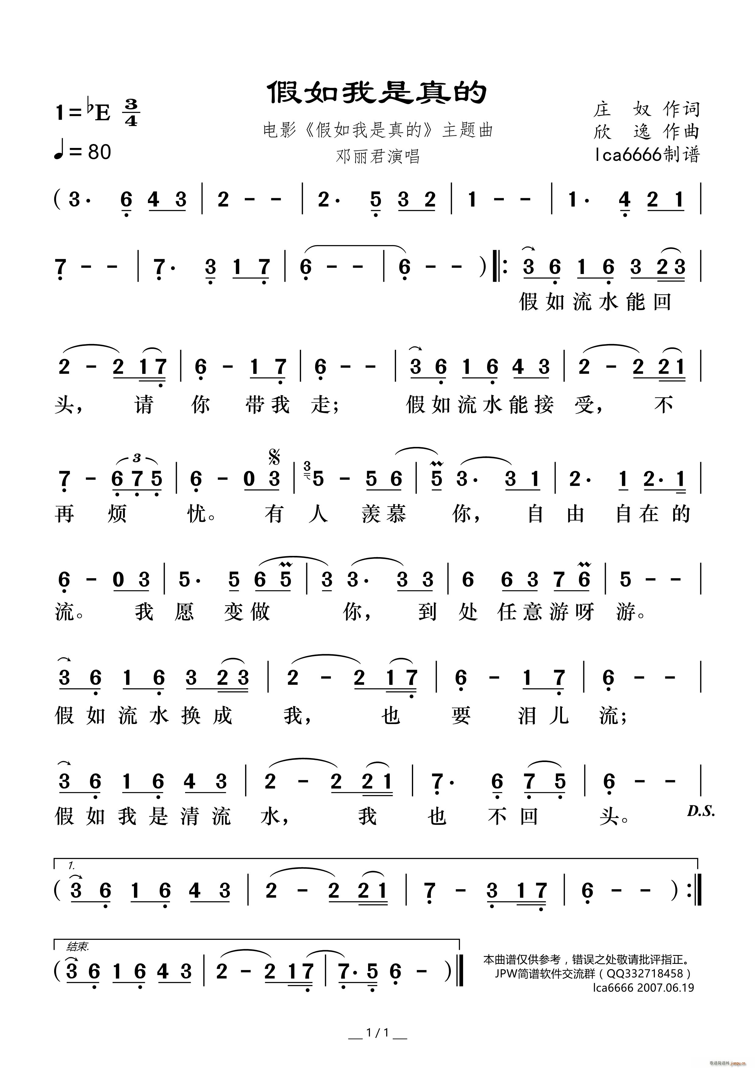 [十字及以上]假如我是真的(电影《假如我是真的》主题曲) 邓丽君