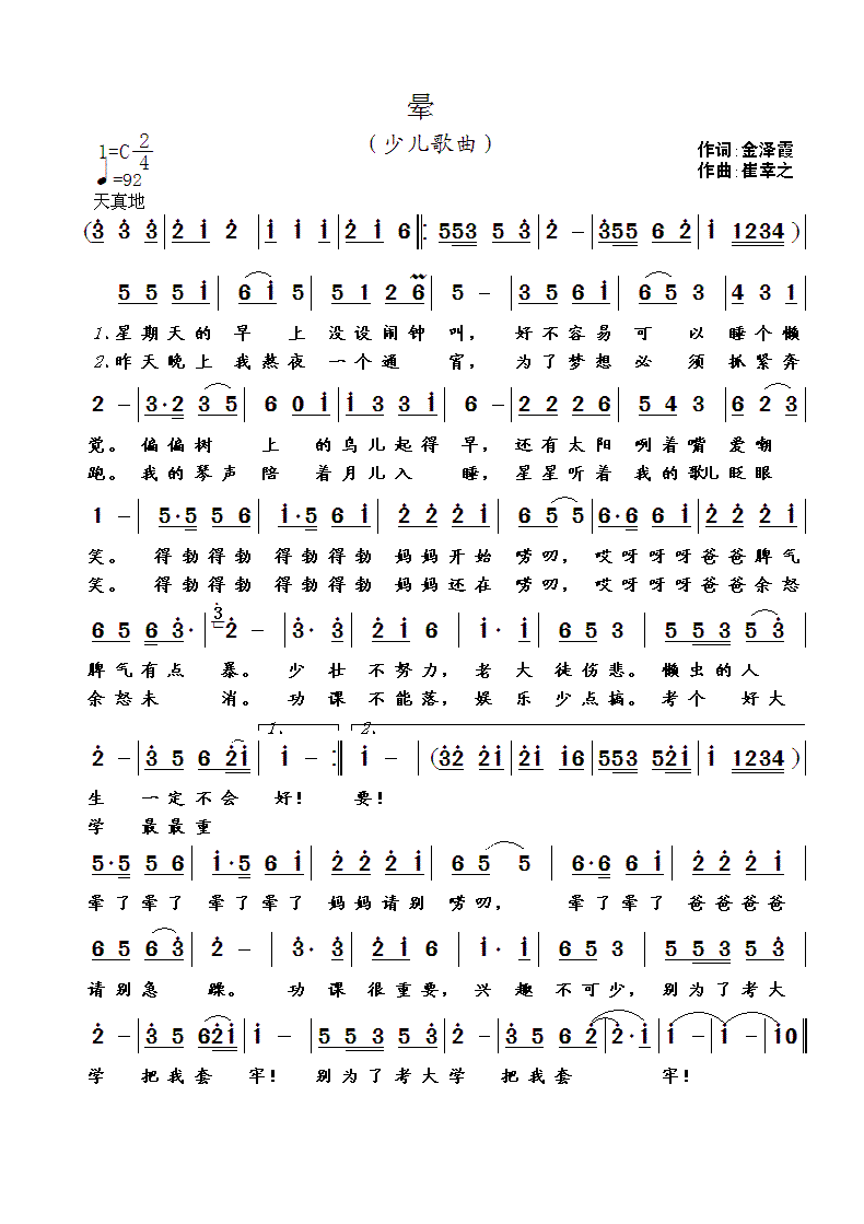 [一字歌谱]晕(金泽霞词 崔幸之曲)