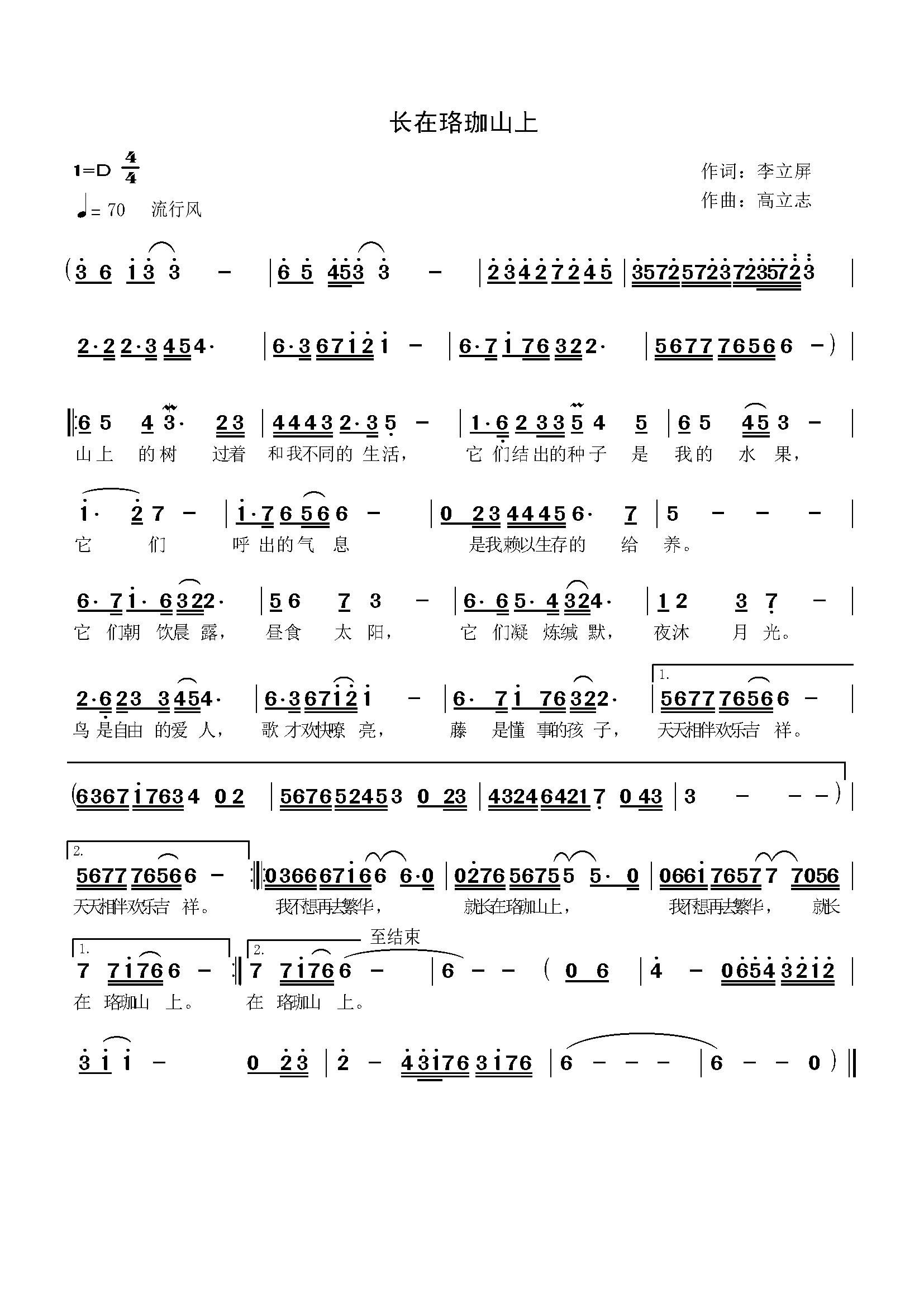 [六字歌谱][流行] 放歌华帝世界 孟宪均词 雲飛揚曲