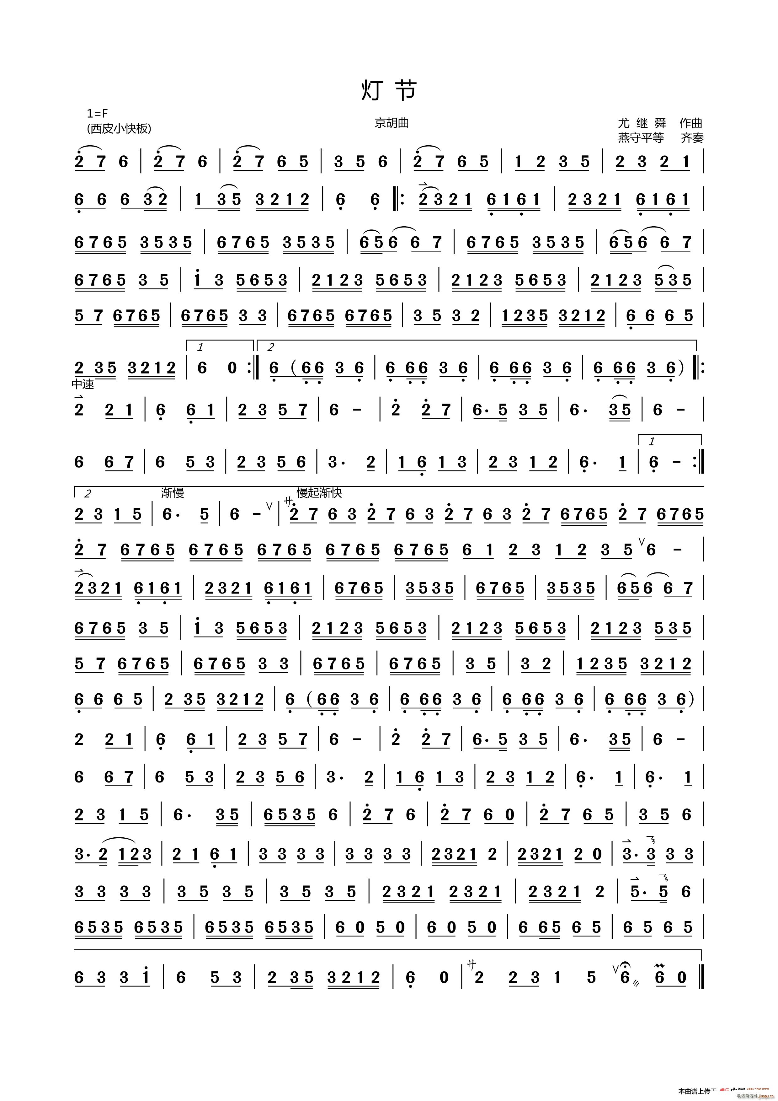 [六字歌谱]灯节(京胡曲) 燕守平等