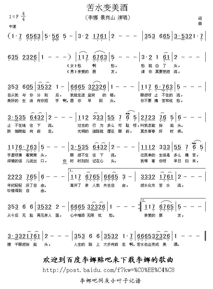 [四字歌谱]一杯美酒(维吾尔族民歌)[高清晰版] 吴碧霞