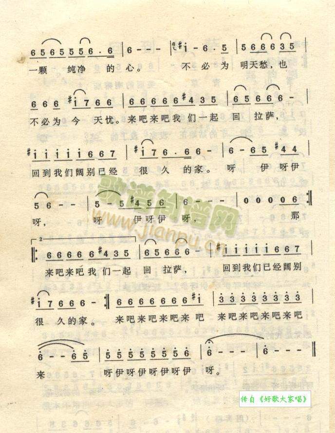 当前位置: 歌谱简谱网 > 四字歌谱 > 回到拉萨