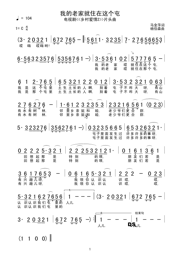 [十字及以上]我的老家就住在这个屯 (《乡村爱情2》片头曲)