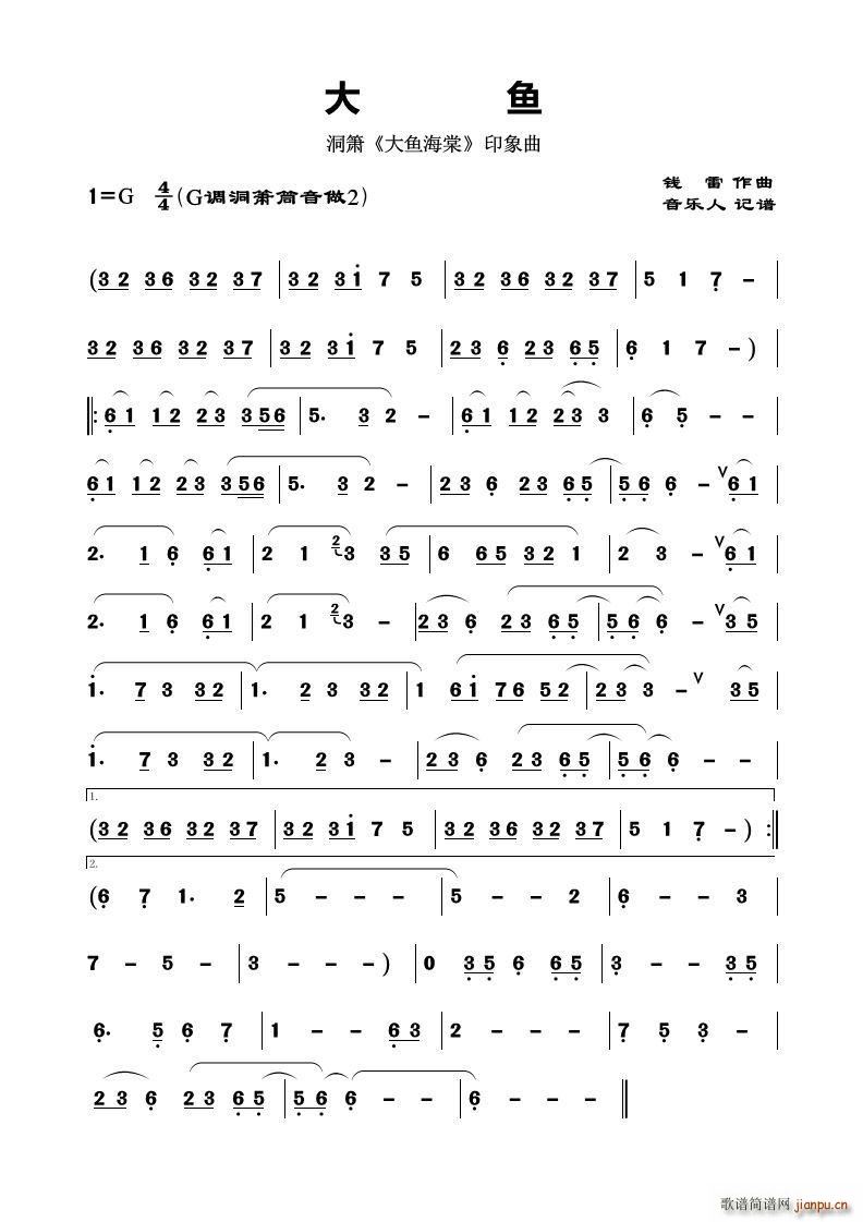 [笛箫谱]大鱼(洞箫《大鱼海棠》印象曲)