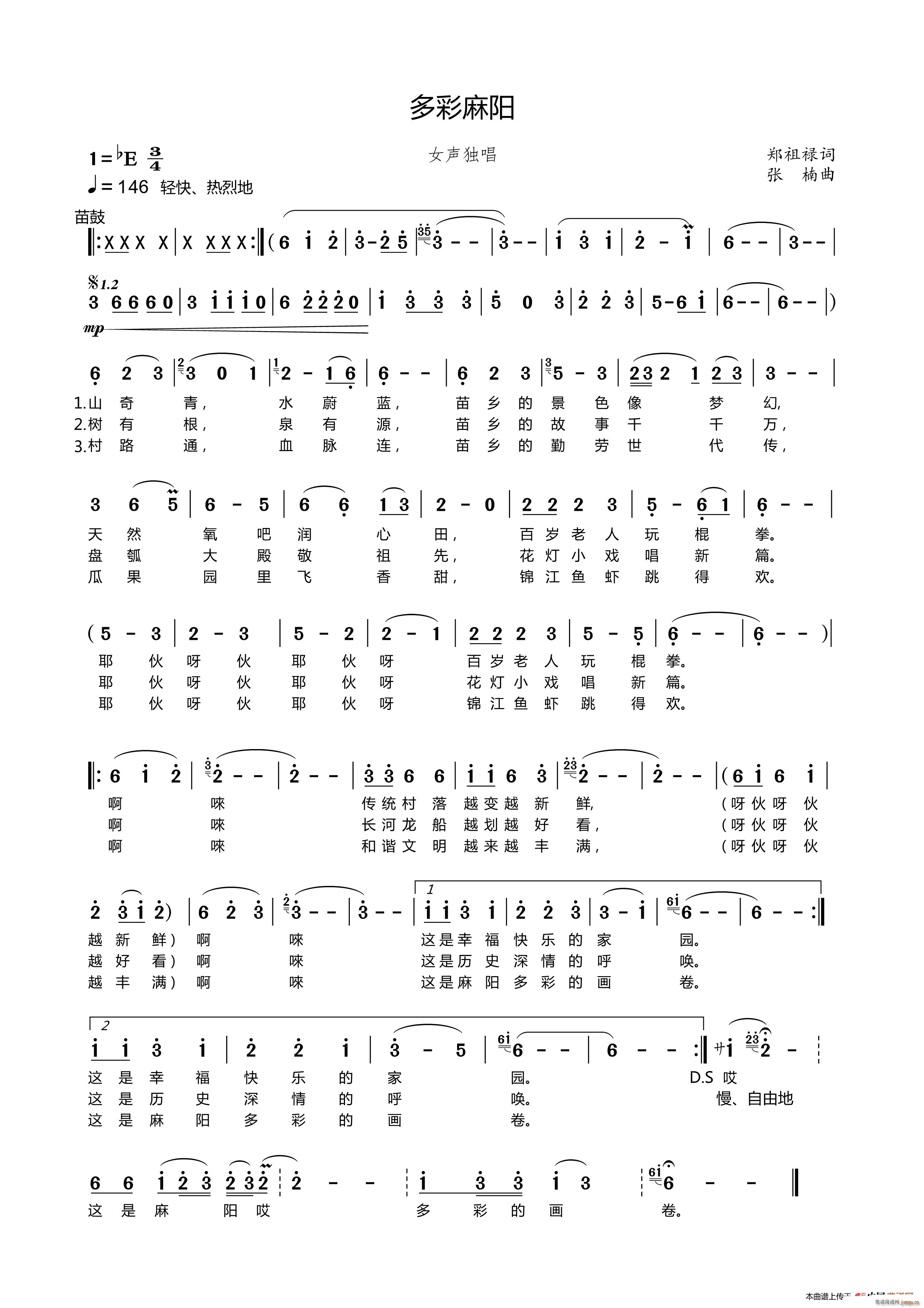 [七字歌谱]多彩贵州多彩情(向侃 词曲) 马关辉