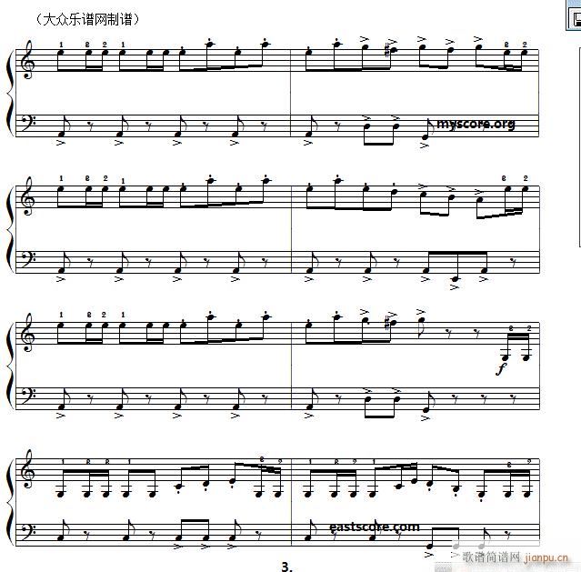 [钢琴谱]民乐名曲 喜洋洋(名曲简易版)