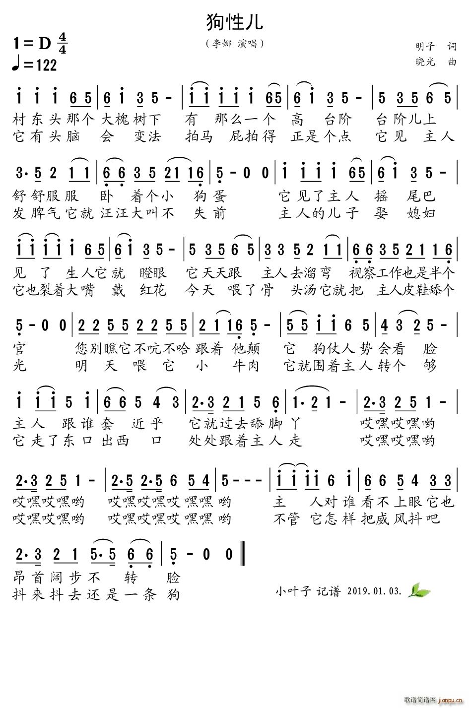 [三字歌谱]狗性儿 李娜