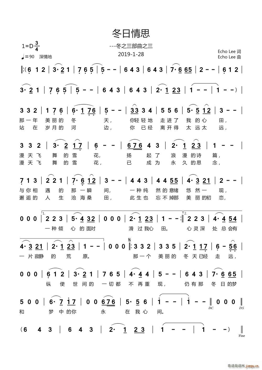 [电子琴谱]冬日恋歌(同名韩剧主题曲)
