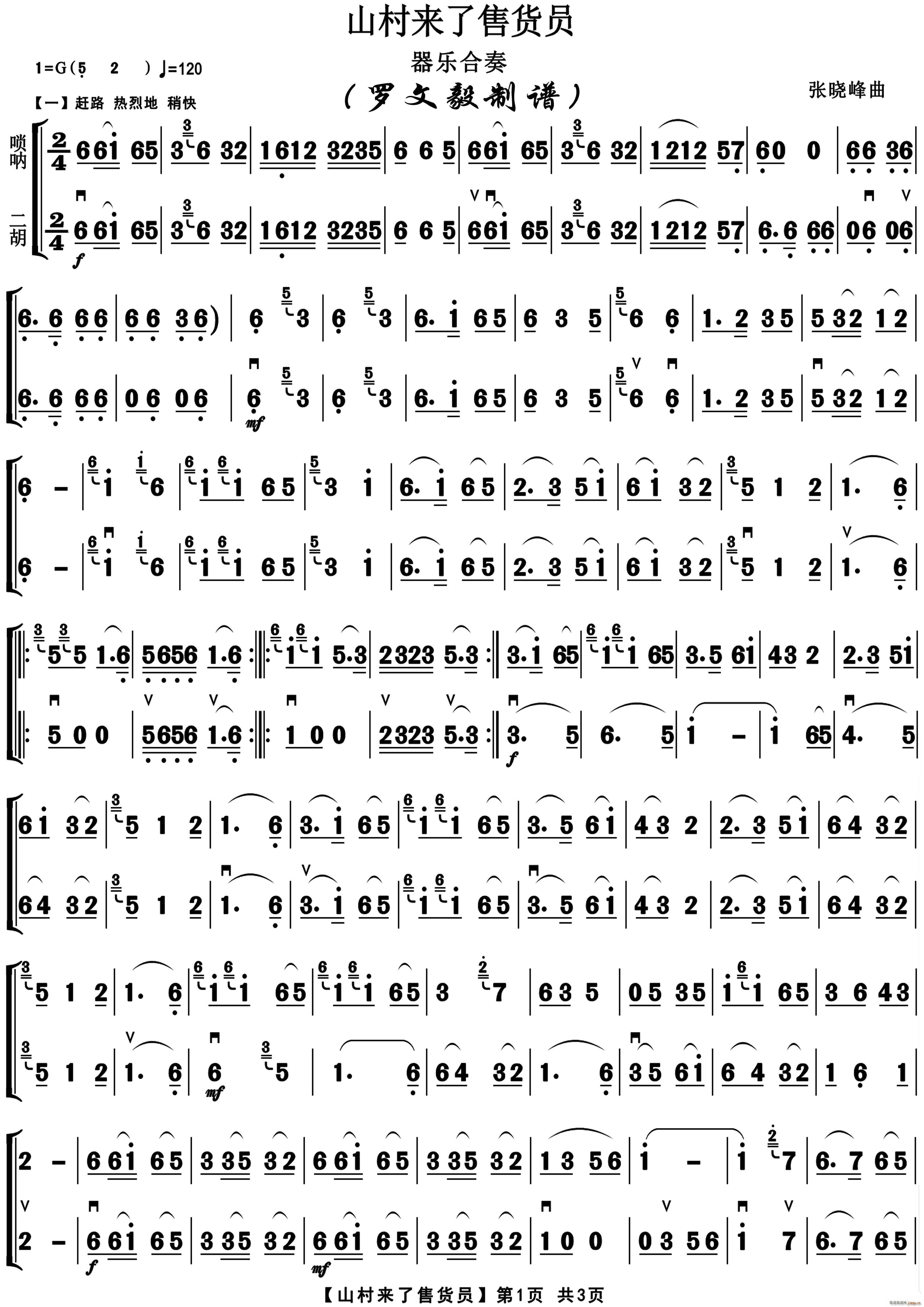 [唢呐谱]山村来了售货员(唢呐独奏 二胡伴奏)