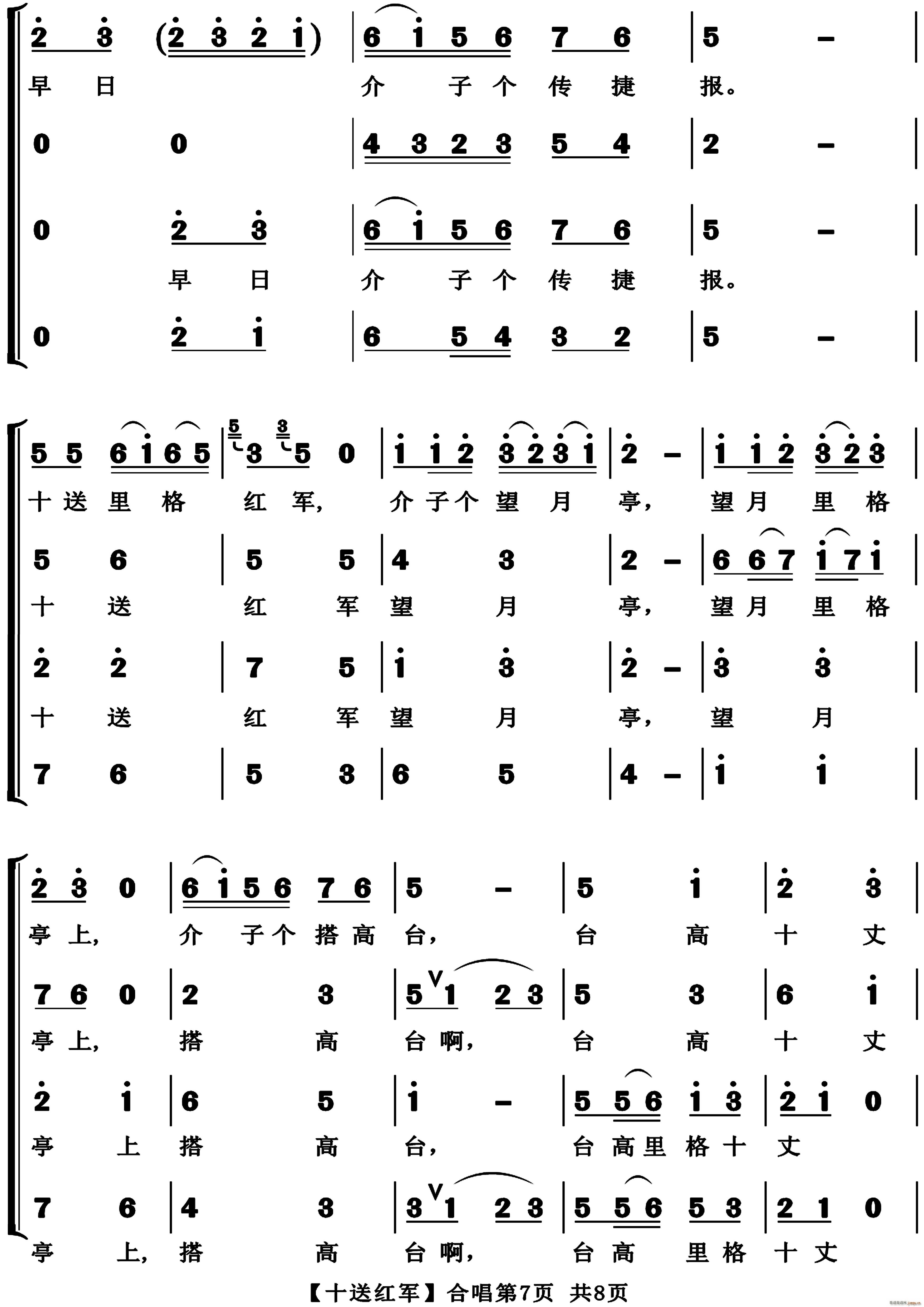 [四字歌谱]十送红军(江西革命民歌)
