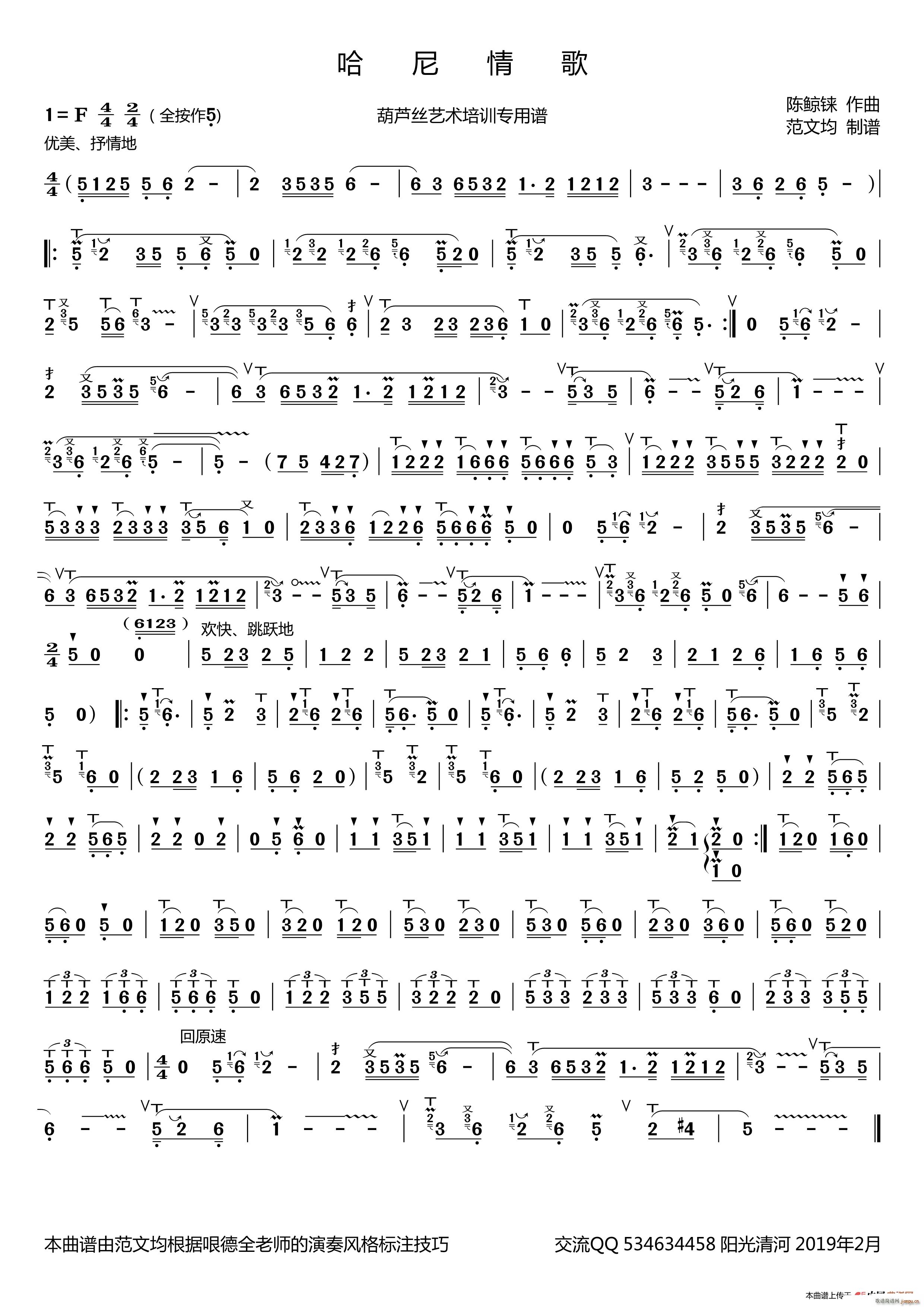 [葫芦丝谱]哈尼情歌 () 哏德全