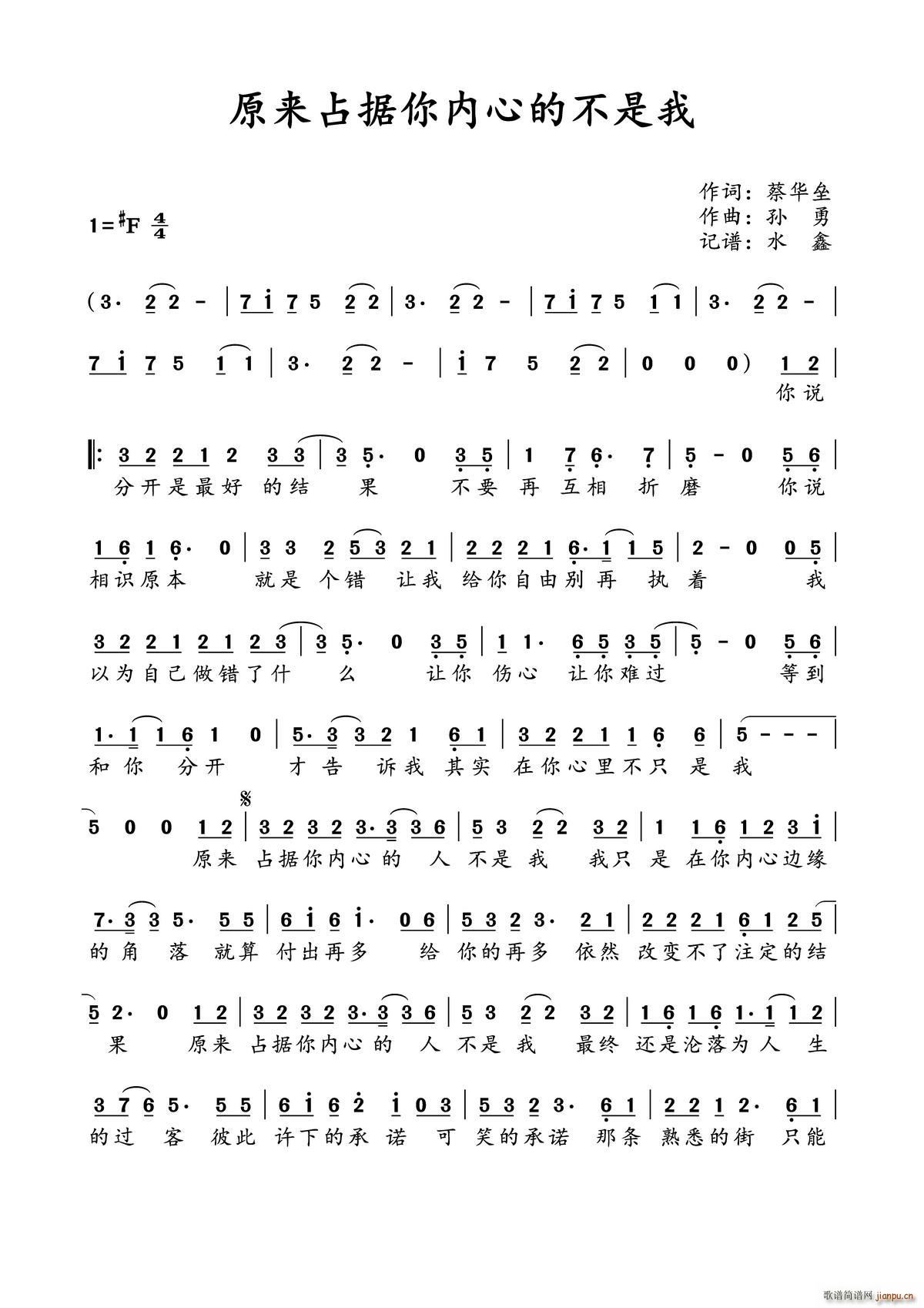 [九字歌谱]你是我内心的一首歌 王力宏selina