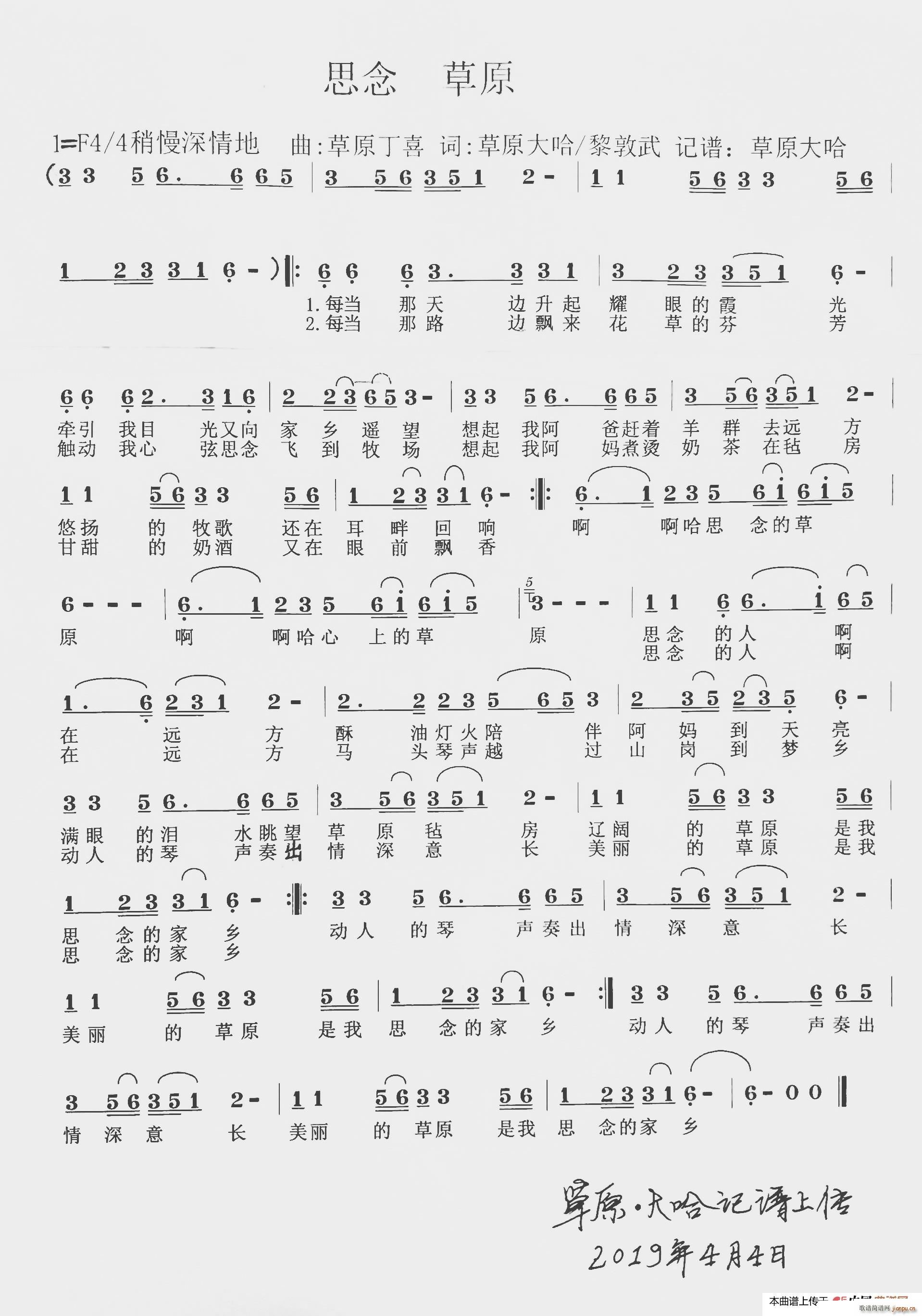 [十字及以上]思念草原(1 F4 4 稍慢深情地) 草原丁喜