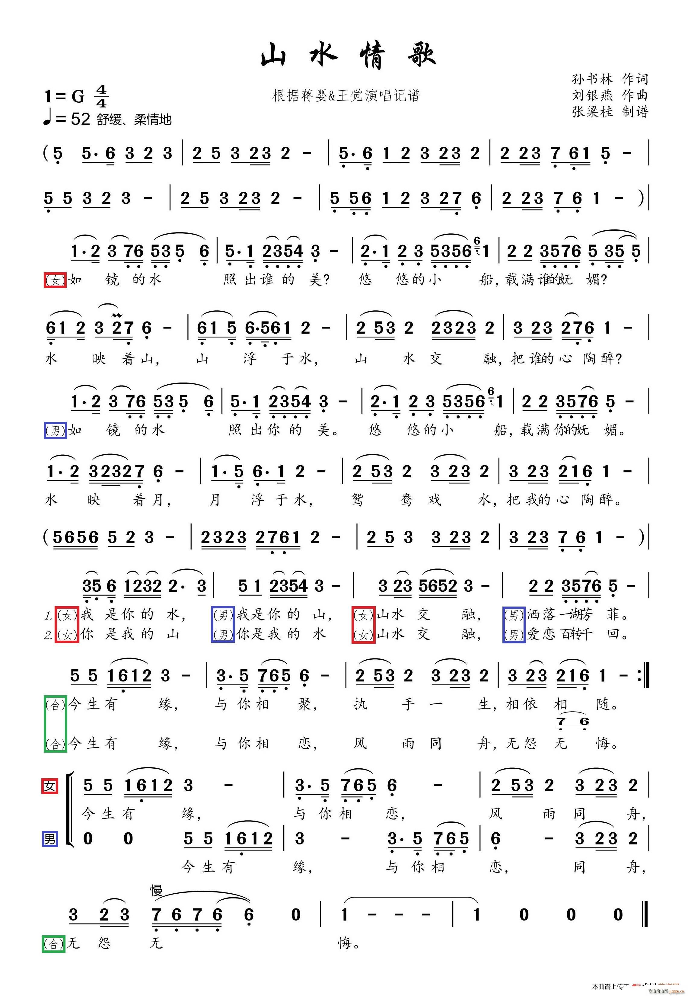 [十字及以上]山水情歌(根据蒋婴 演唱记谱) 王觉