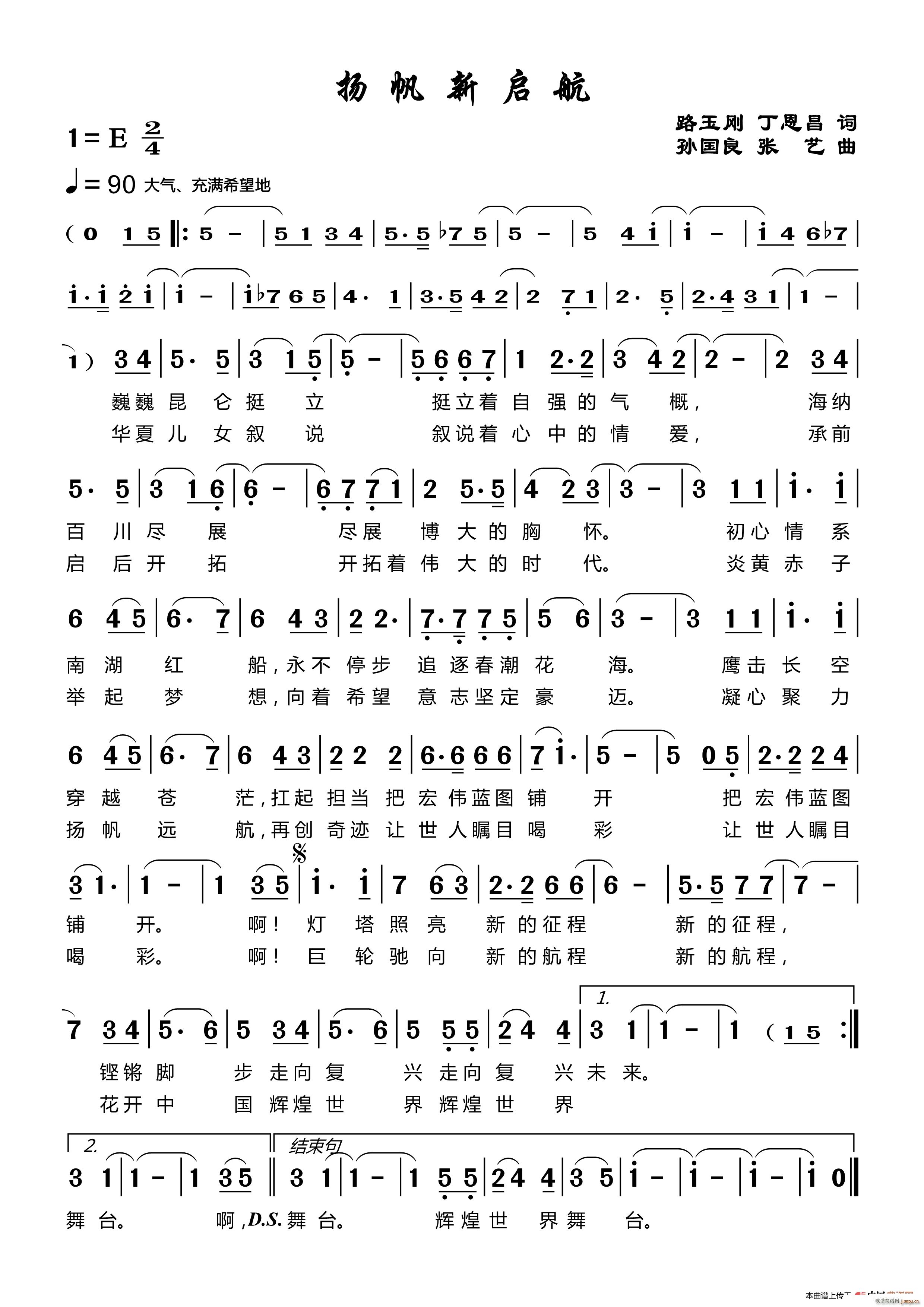 [十字及以上]扬帆新启航(路玉刚丁恩昌词张国良张艺曲) 杨竹青
