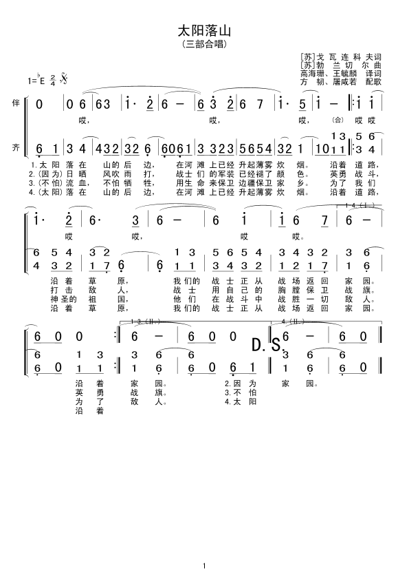 [合唱谱]太阳落山