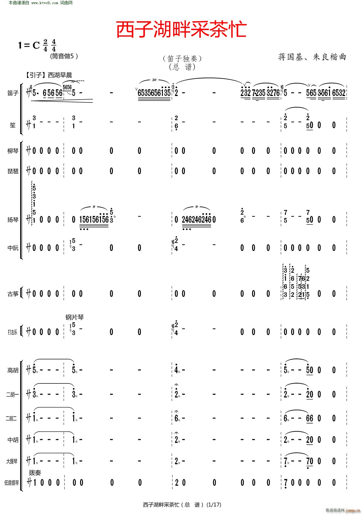 [总谱]西子湖畔采茶忙( 笛子分谱 )